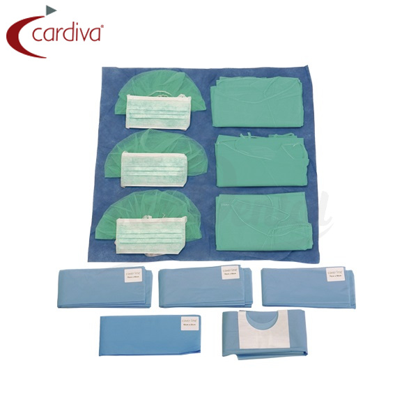 Set para Implantología Cardiva 1ud. Set completo de protección para 3 sanitarios, con batas, guantes, gorros, mascarillas y paños.