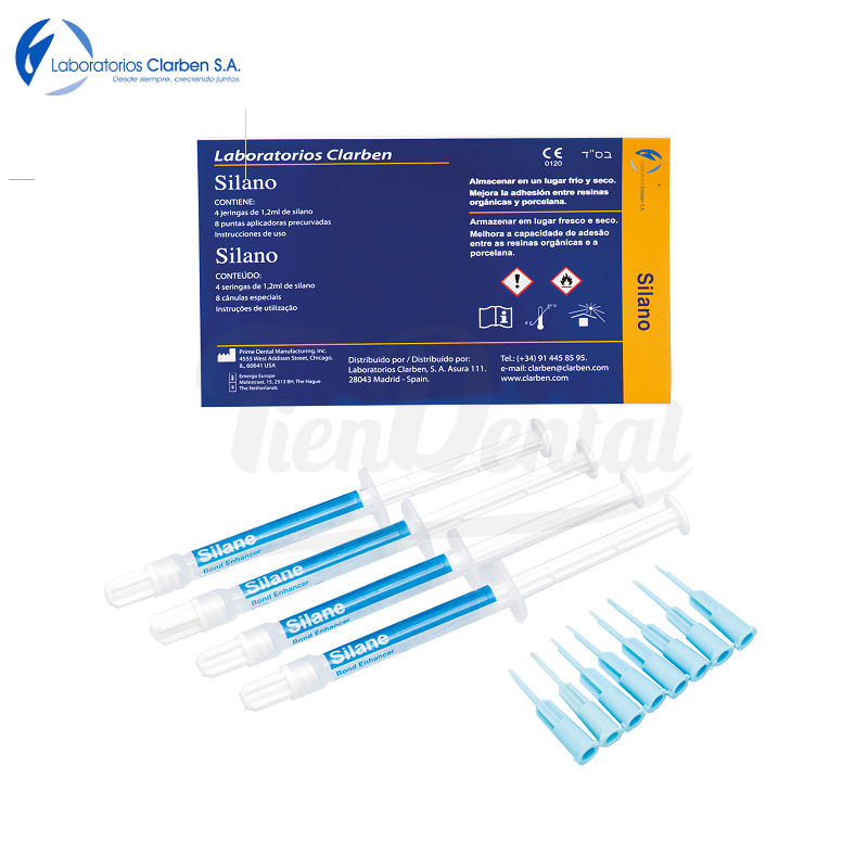 Silano Clarben es un agente que se acopla y crea puentes orgánicos - inorgánicos y además incrementa la fuerza de la adhesión de las resinas orgánicas, como los composites y los conatos de resina.