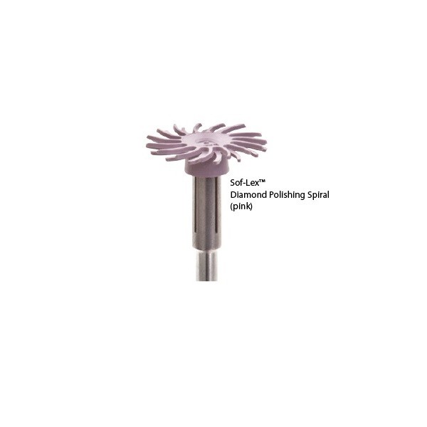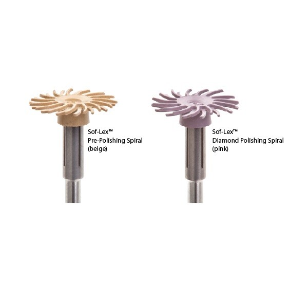 La espiral de prepulido prepara la restauración para el brillo final, mientras que nuestra espiral de pulido impregnada en diamante da a sus restauraciones un sorprendente brillo similar al obtenido con la pasta.