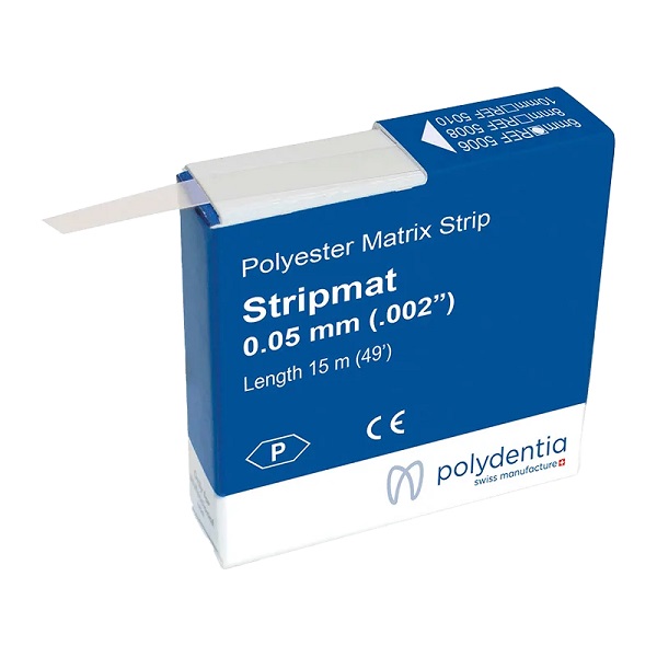 Stripmat Banda Matriz Transparente Polydentia 15 m. Banda matriz transparente de poliéster para la polimerización óptima del composite.