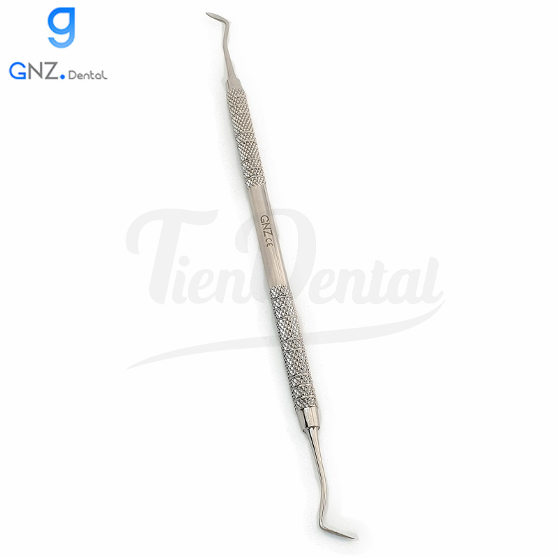 Tallador Hollenback GNZ de acero inoxidable. Este Instrumento se utiliza para recortar excesos de amalgama. Es plano y tiene dos partes activas.
