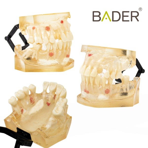 Calidad: Los modelos de cirugía BADER están fabricados de una espuma de alta densidad igual al hueso, lo que garantiza realismo total a la hora de hacer una extración. Gingiva duroplastica siliconada, realista. Placa standard compatible con fantomas, Kavo®, Nissin®.