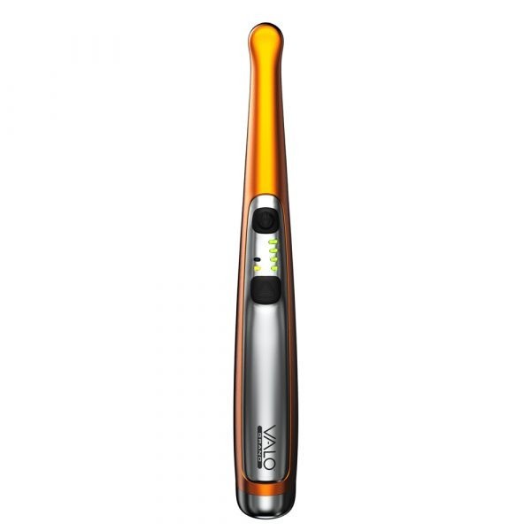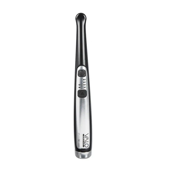 La lámpara VALO Grand utiliza un diodo emisor de luz de longitud de onda múltiple (LED) para producir luz de alta intensidad de 385-515 nm, capaz de polimerizar todos los materiales dentales de polimerización por luz. Esta intensidad penetrará también la porcelana y es capaz de polimerizar cementos que se encuentren bajo la resina, en forma similar a una lámpara halógena de calidad.