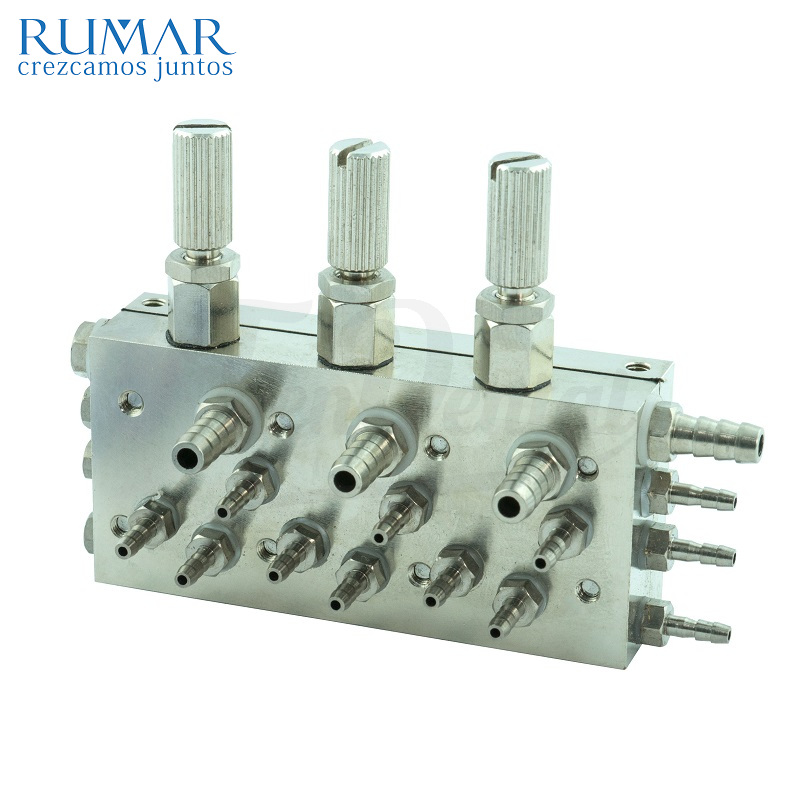 Válvula bloque 3 instrumentos Estándar RUMAR. Válvula de repuesto para equipos dentales. Para bandejas de 3 instrumentos.