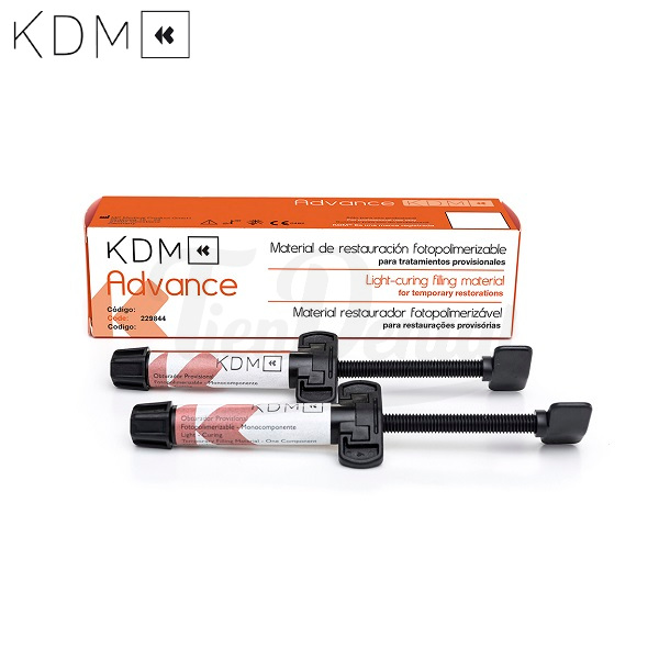 Advance KDM Obturador provisional fotopolimerizable 2 x 4g. Su consistencia elástica garantiza una fácil adaptación y fácil de retirar incluso en obturaciones muy profundas.