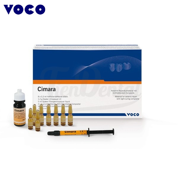 - Kit Cimara: Contenido: Set silano adhesivo 8 × 0,3 ml + adhesivo frasco 4 ml + Opaker LC jeringa 1,2 grs. + GrandioSO Caps 8 × 0,25 grs. (A1, 2 × A2, 2 × A3, A3.5, B2, GA3.25), accesorios
