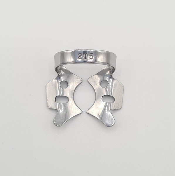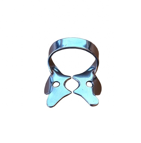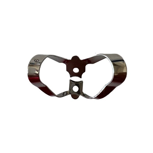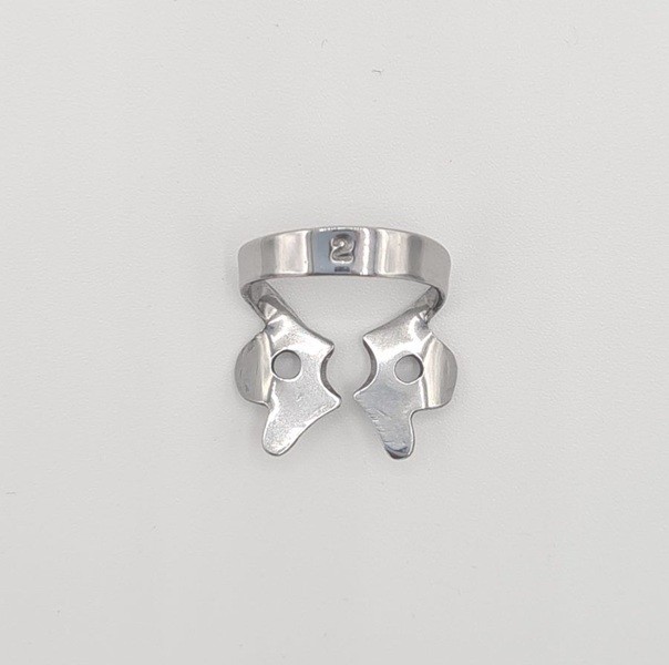 Para la aplicación de los clamps con alas, coloque en primer lugar el clamp de forma intraoral y a continuación extienda el dique dental sobre el clamp y el diente.