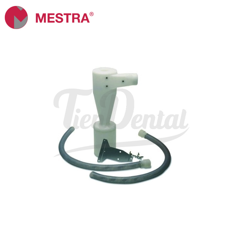 Sencillo dispositivo que se acopla a la entrada de una Unidad de Aspiración convencional para el prefiltrado de partículas de polvo. El aire circula a través de un circuito que hace que las partículas caigan en un depósito interno.