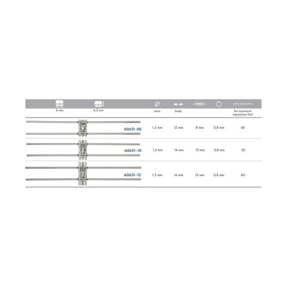 - Gracias a la presencia de una adecuada sede sobre las guías, la cabeza del tornillo macho mantiene centradas las guías a lo largo del tratamiento, asegurando una expansión simétrica, estable y minimizando la posibilidad de desactivación espontánea durante la terapia.