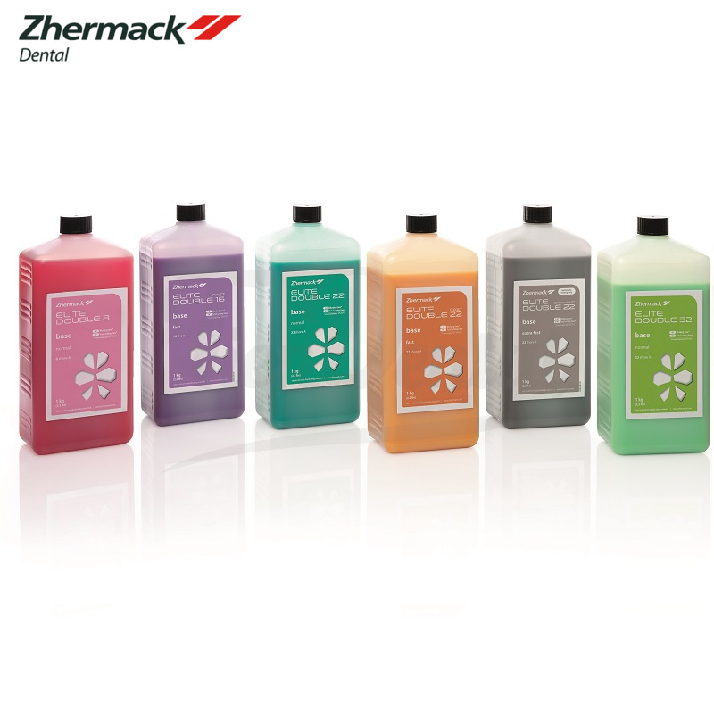Las siliconas Elite Double satisfacen las principales necesidades de los técnicos dentales. Se compone de varios productos con cuatro durezas finales diferentes y tres tiempos de fraguado: normal, rápido y extra rápido (éste último estudiado para mezcladoras automáticas).
