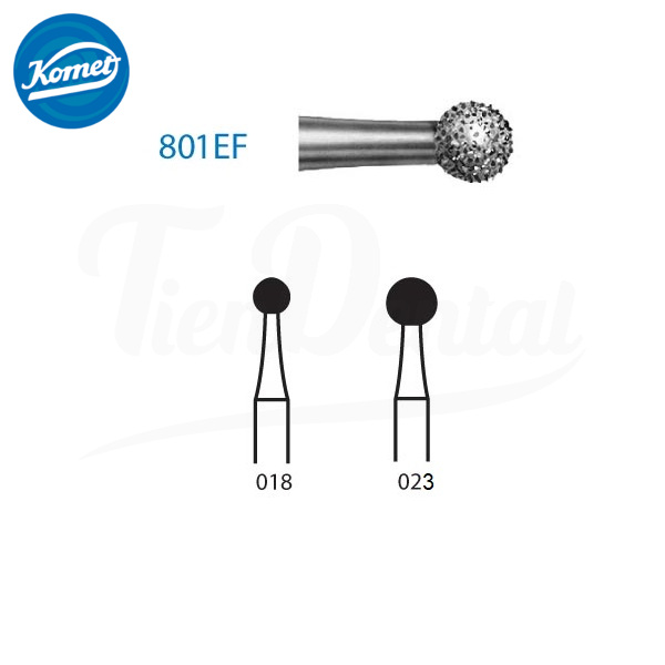 Fresa Turbina Diamante Bola 801EF.314 Komet 5 Uds. Fresa de diamante con forma de bola y grano extra fino. Para uso en turbina (FG). 5 unidades.