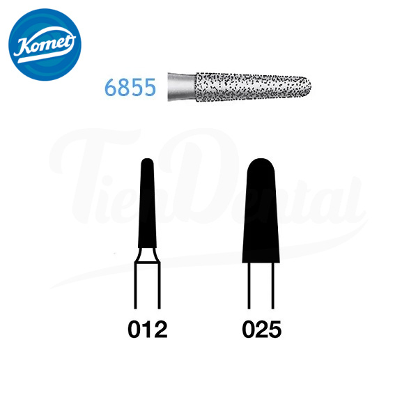 Fresa Turbina Diamante Cónica Corta Biselada 6855.314 Komet 5 Uds . Fresa de diamante cónica biselada con grano grueso. Para uso en turbina (FG). 5 unidades.