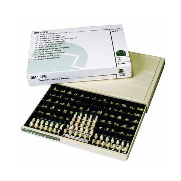 Kit Coronas de policarbonato 3M™, coronas provisionales para anteriores y premolares. Contiene 2 unidades de cada tamaño y molde guía.