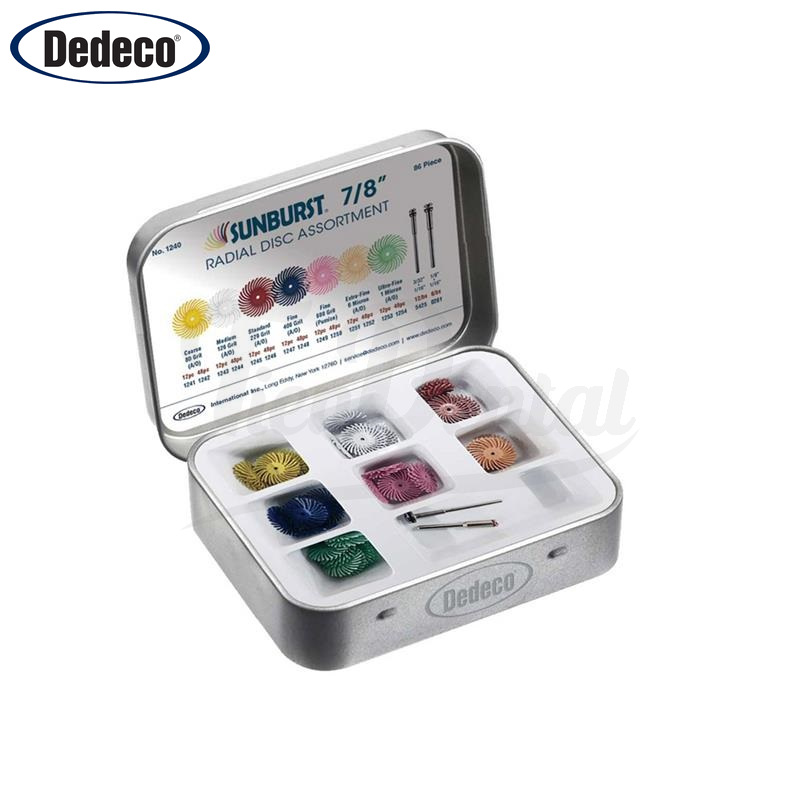 Los discos radiales SUNBURST están especialmente indicados para desbastar, pre-pulir, pulir y abrillantar todo tipo de aleaciones, metales preciosos, acrílicos y cerámicos sin necesidad de utilizar pasta de pulir.