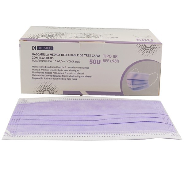 Mascarillas quirúrgicas tipo IIR 50u. Mascarilla quirúrgica desechable de 3 capas. Eficacia de filtración: ≥98%. Caja 50 unidades.