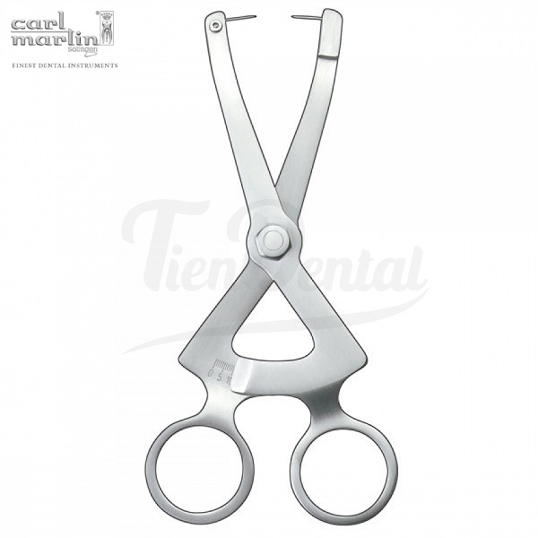 Osteómetro 1922 Carl Martin. Pinza de medición para medir el ancho de la cresta alveolar, escala bilateral. Acero inoxidable.Esterilizable en autoclave.