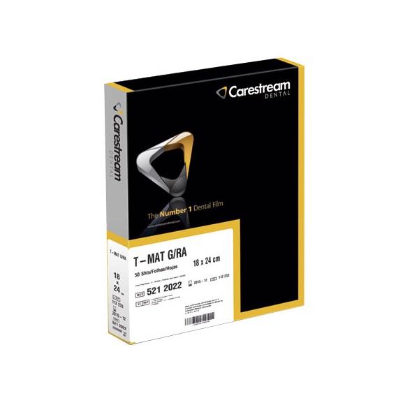 CARESTREAM T-MAT G es una película dental sensible al verde de alta resolución y alto contraste.