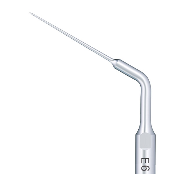 Punta ultrasonidos E6 EMS. Delgada y flexible, recomendada para extraer cuerpos extraños del canal radicular profundo.