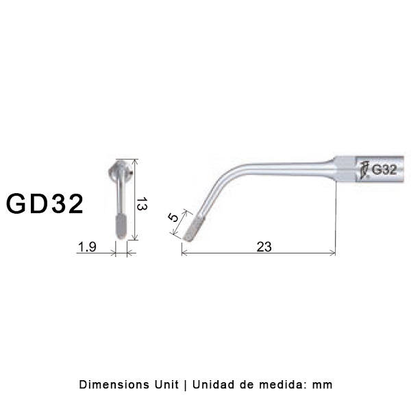(grano de 90µm) en la cabeza de la punta, utilizados para la preparación de la