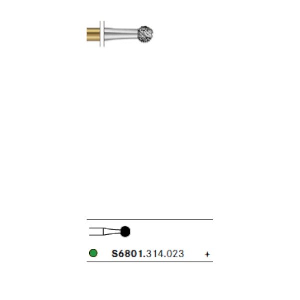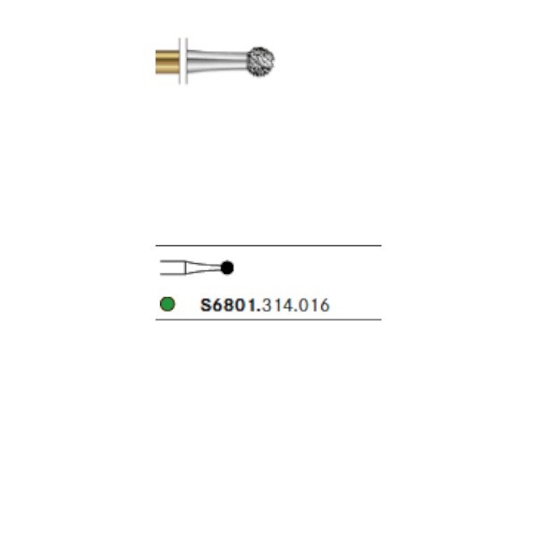 S6801.314 Fresa Diamante Turbina Redonda Anillo Verde 1 Unidad. Fresa de diamante con forma de bola. Para uso en turbina (FG). 1 Unidad