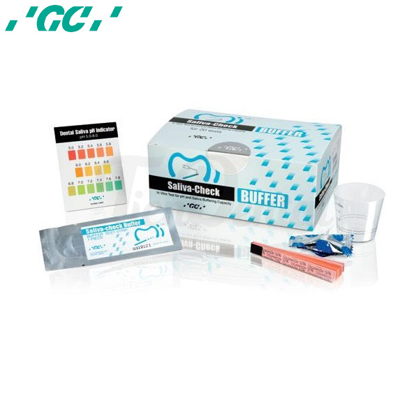 Saliva-Check Buffer GC. Prueba realizada en la clínica para evaluar la calidad de la saliva. Envase de 20 pruebas.