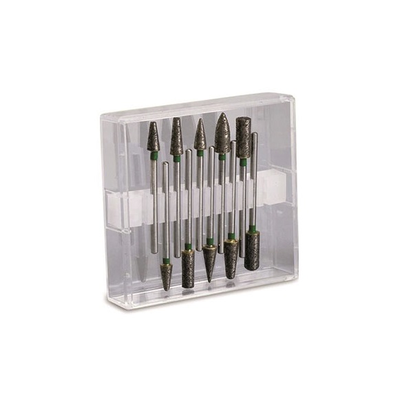 Set 10 fresas diamante sinterizado Grano Grueso Mestra. El set se compone de 10 fresas con diamante en masa (no recubrimiento superficial, sino cuerpo enteramente de diamante)