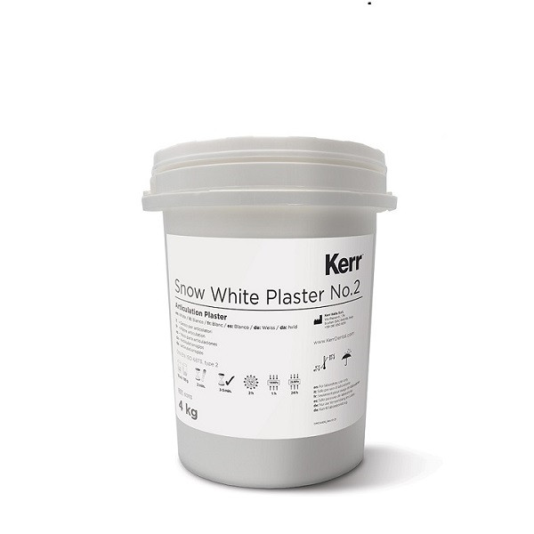 Snow White Yeso tipo 2 Extrablanco Fraguado rápido 18 Kg. Para impresiones, articulación, transferencias de soldadura, guías labiales/oclusales y la creación de piezas temporales.