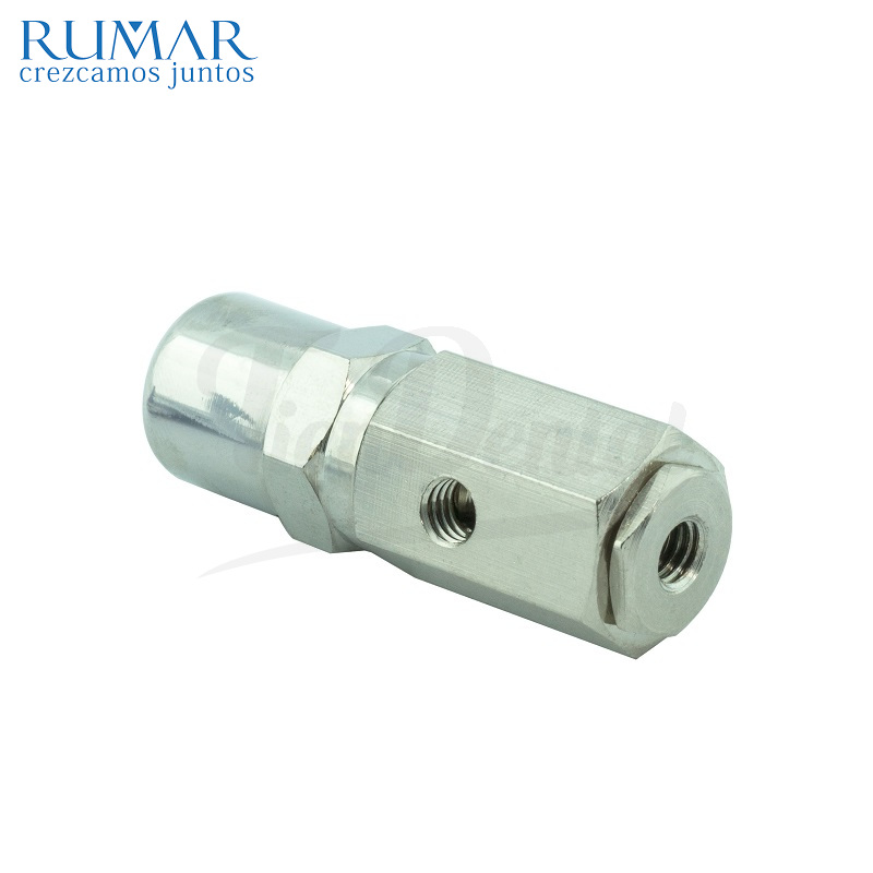 Válvula neumática de 3 vías Cerrada RUMAR. Puertos de 10/32″ x 1,6mm. Sólo Agua. Normalmente cerrada. No incluye espigas.